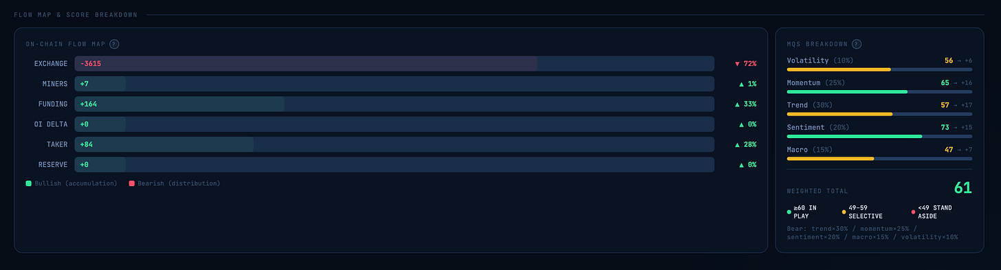 That is all the news for today. Now to what Weekly Engine actually gathers for. The main question - is the improvement sufficient for the system to stop viewing the current situation as a fragile pause. In today’s issue I will cover which layers have already moved to the bullish scenario side, where hidden vulnerability remains, and what the final verdict of Weekly Engine is for the coming week after a full reassembly of all key signals.